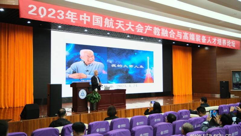 本网讯(党委宣传部通讯员 叶惠玲)4月24日,主题为“格物致知 叩问苍穹”的第八个中国航天日主场活动暨中国航天大会在合肥开幕。24日下午,2023年中国航天大会产教融合与高端装备人才培养论坛在我院召开,论坛特邀中国工程院院士、原中国运载火箭技术研究院火箭系列总设计师龙乐豪作《我的火箭人生》励志主题报告,讲述了他开创CZ-3A系列火箭的奋斗历程与成就。中国职业技术教育学会会长、教育部原副部长鲁昕,省委教育工委委员、省教育厅副厅长解平,中国航天科技集团有限公司原总工程师庄国京,中国航天科技国际交流中心副主任周岫彬,学院党委书记李方泽等院领导,全国大专院校、教育主管部门、航天相关单位和部门有关领导以及学院各部门、二级学院主要负责人,教师代表、学生代表等近500人参加报告会。